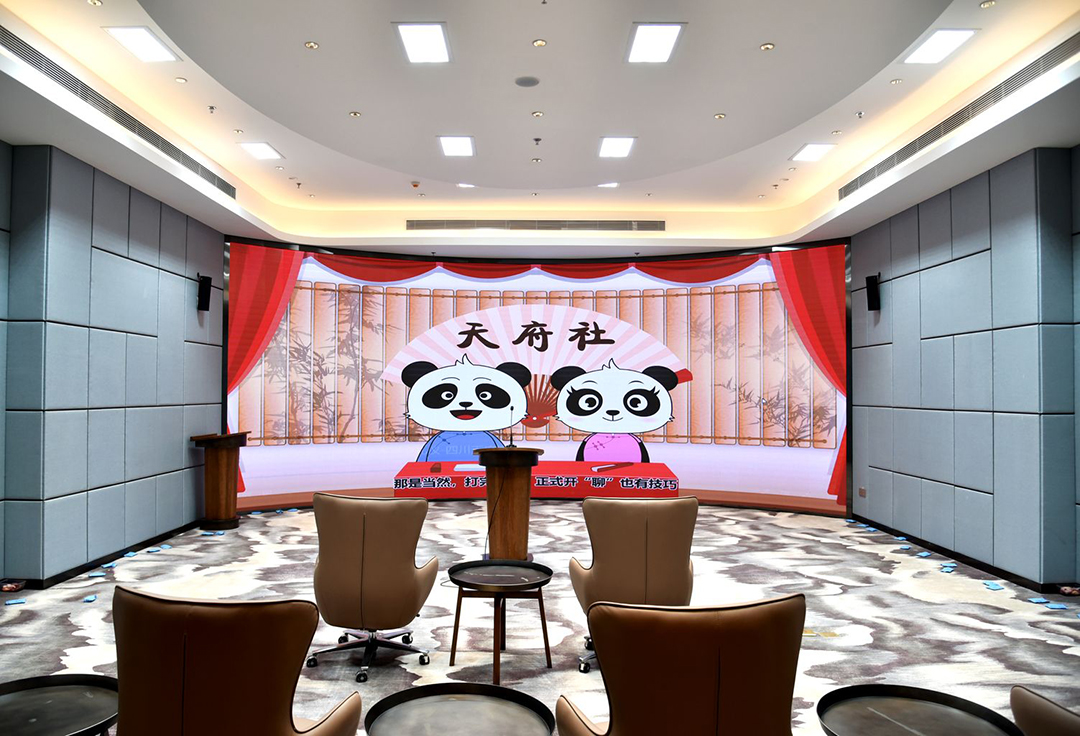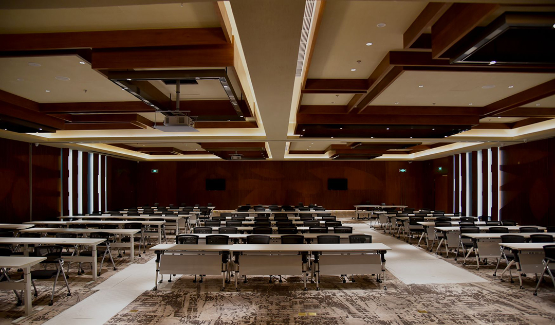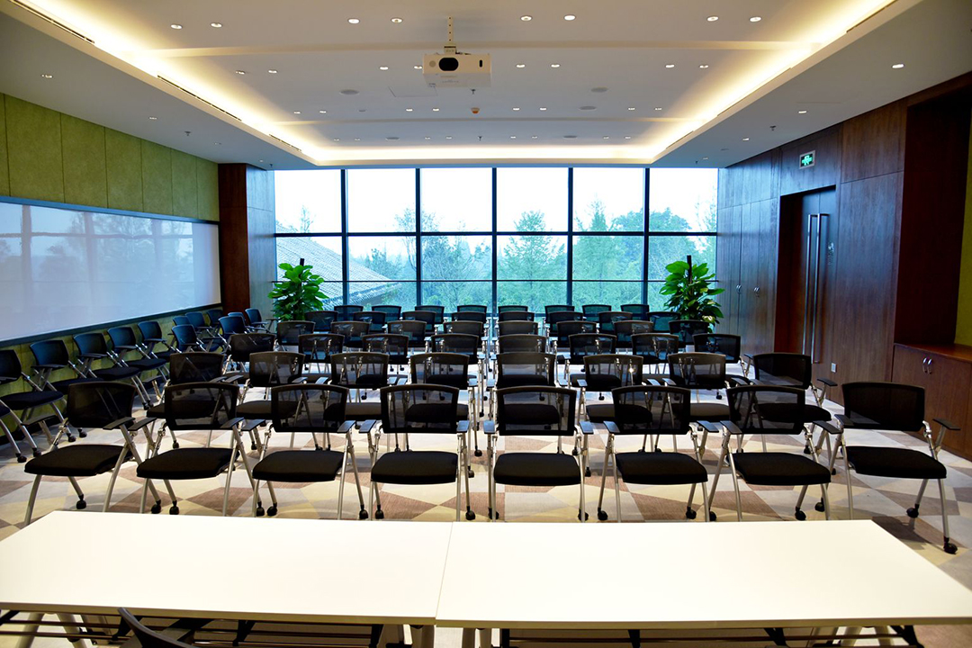 天府厅面积390平米,配备有LED显示大屏,能分割成2个独立区域,适合开展大班授课、室内拓展训练以及典礼活动。