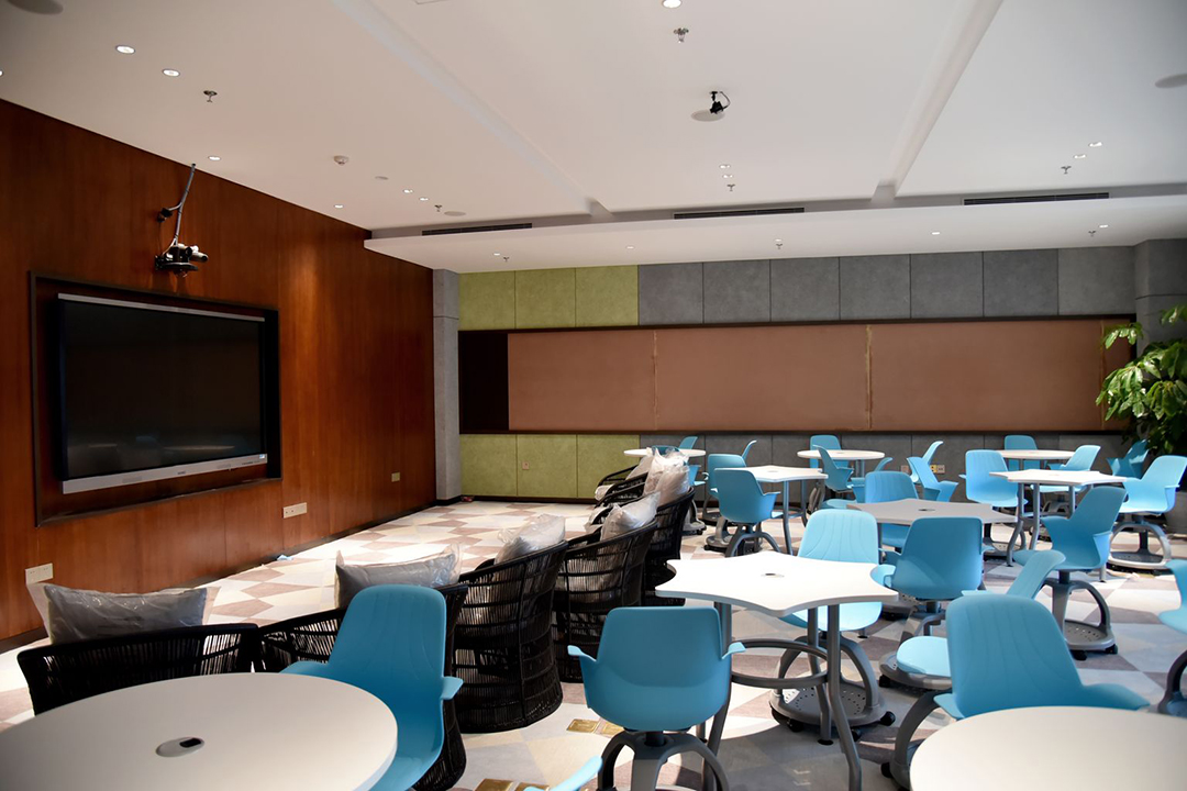 创享中心面积160平米,配备有小组会议平板,互联互通,适于开展开放分享、小组行动等活动。