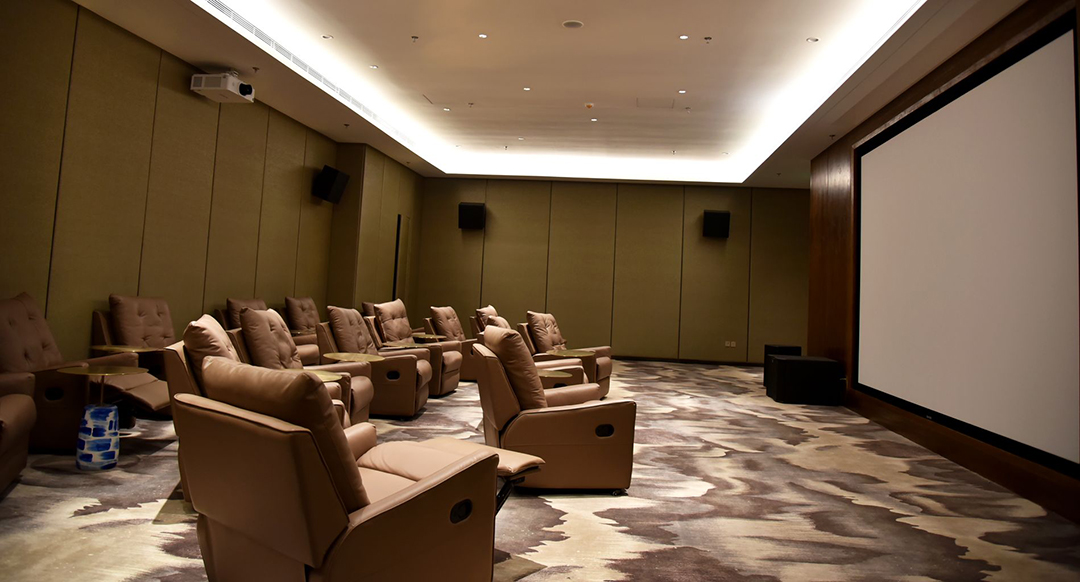 视听室面积110平米,能提供电影级音效,实现电影教学功能。