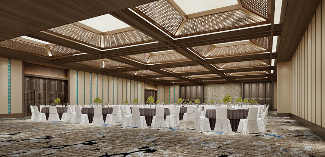 中式宴会厅四川厅面积494平米,可分割为2个场地,适用于大型宴会。
