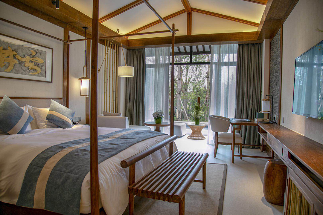 基地崇尚自然健康的居住理念,231间宽敞明亮、豪华舒适的客房,均采用全套环保材质家具,满足高品质客户的居住需求。客房支持手机远程开锁批量入住,房内电视能实现信息推送、课程直播、录播观看等定制化功能,为学员带来极致的入住体验。