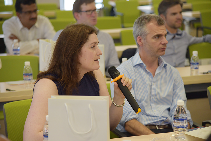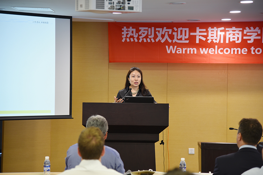 四川天府银行副行长、董事会秘书简颋女士向卡斯MBA访问团介绍天府银行发展及运营情况。
