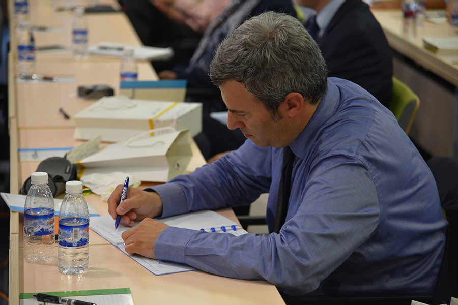 访问团成员专心致志听讲。