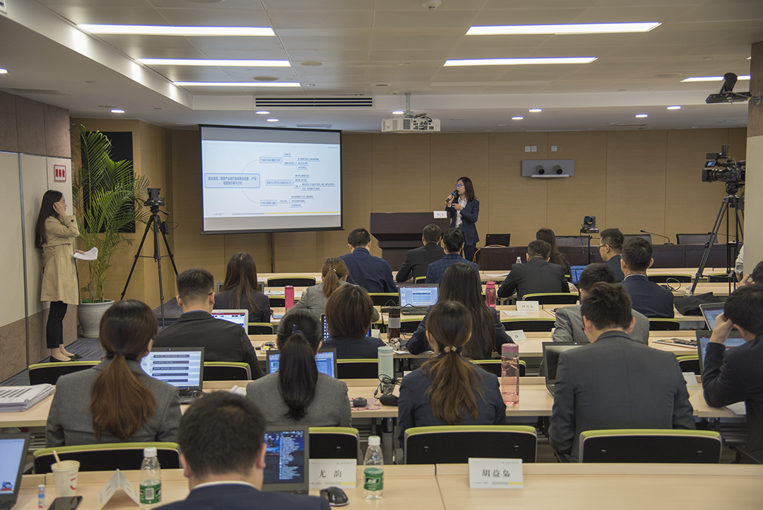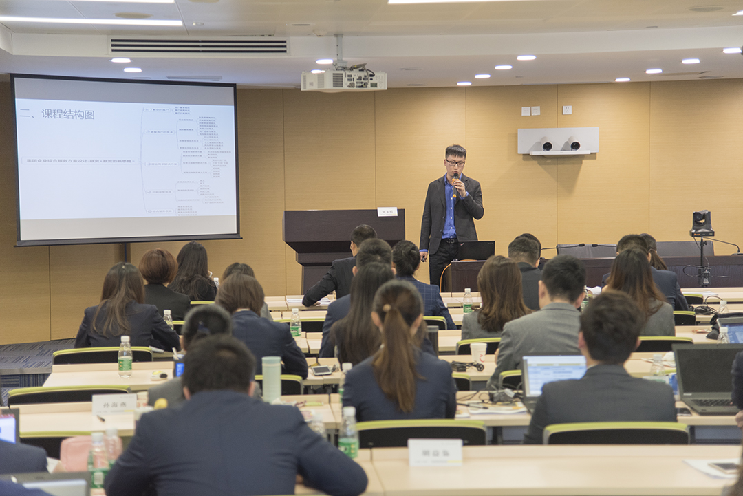 22日,课程评审小组对学员课程成果进行了验收评审。每位学员依次上台完成说课,陈述自己课程开发的逻辑与框架,展示PPT课件。评委老师分别从课程目标、课程结构、课程内容、课件制作四个维度进行说课评审。受邀参加课程评审的有公司业务部、零售业务部、人力资源部部门领导以及课程主讲老师任老师。