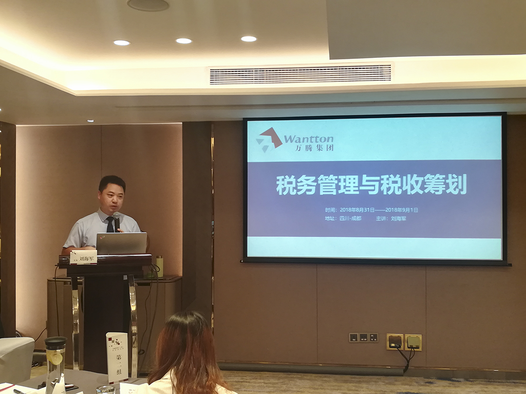 2018年8月31日-9月1日,万腾商学院(二期)财务特训营第二次课程在成都希尔顿酒店顺利举行。本期课程主题为《税务管理与税收筹划》,课程内容旨在让财务人员紧跟税收改革新动态,掌握财税新政策,进一步提升财务人员的专业能力和业务水平,为集团转型升级、创新发展提供更加优质、高效、坚实的财务支撑。